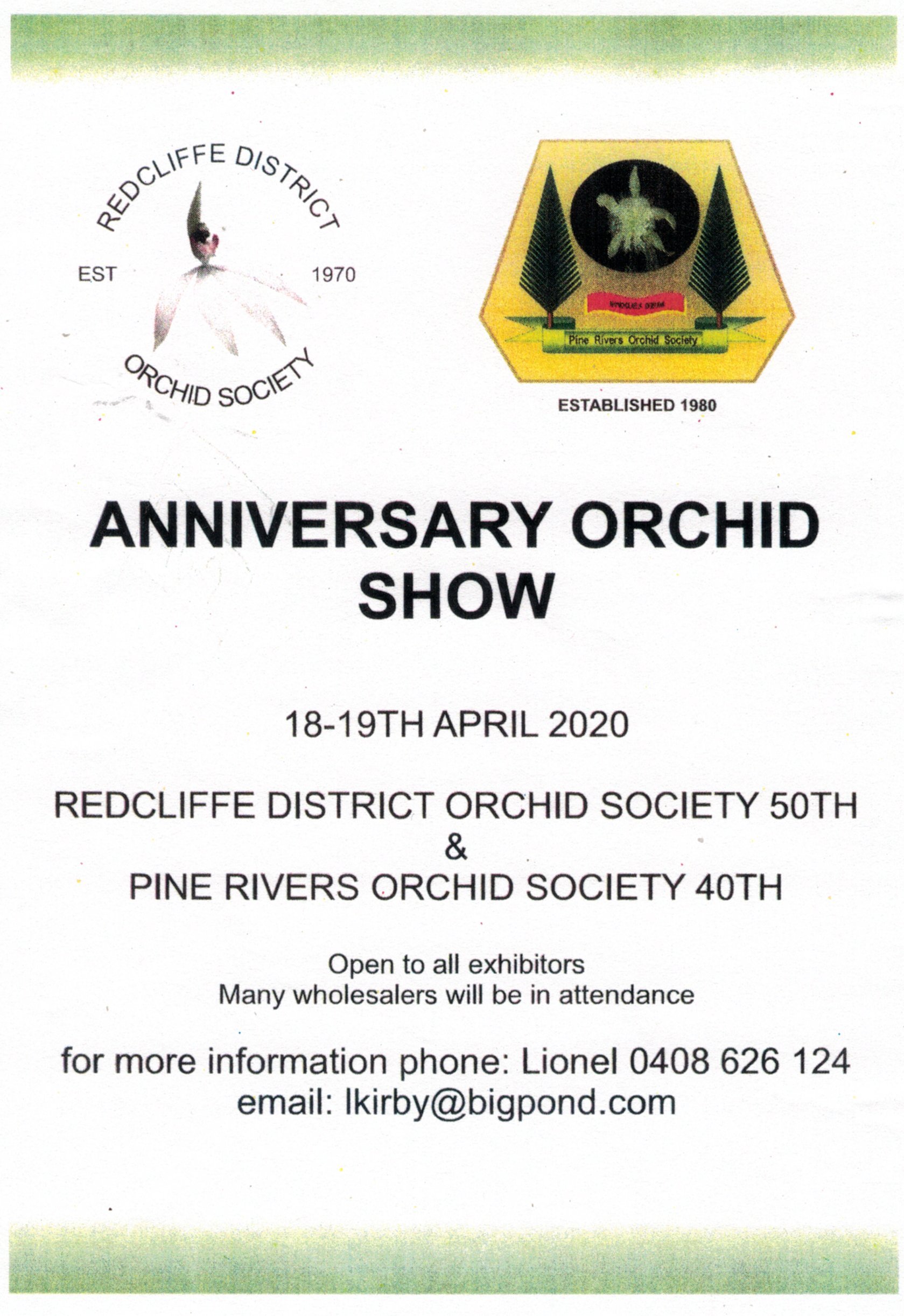 Saturday 18 & Sunday 19Redcliffe & Pine Rivers Orchid Societies |